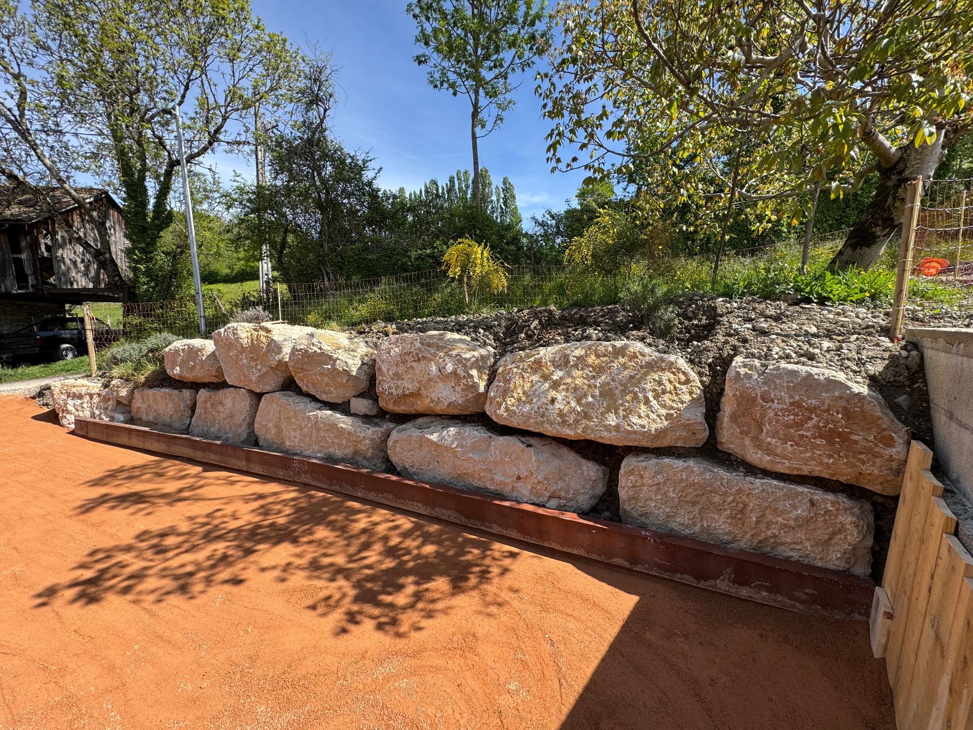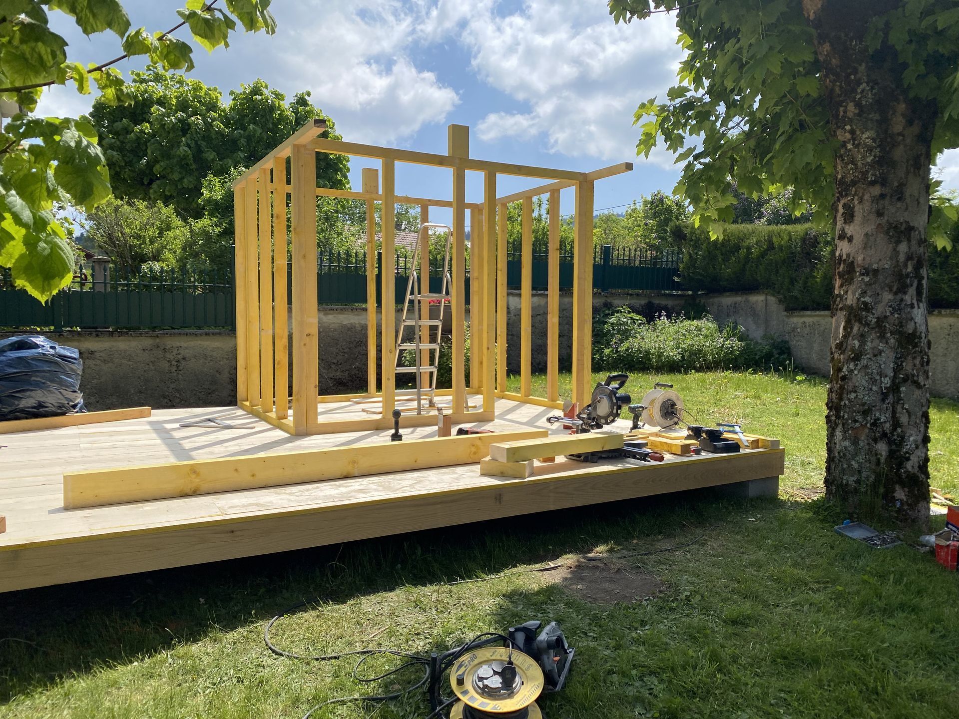 - Maçonnerie et boiseries : maçonnerie intérieure (création de cloisons, ouverture de murs), maçonnerie extérieure (dallage béton, pavage...), sablage, décapage et vernissage de chalets, volets…